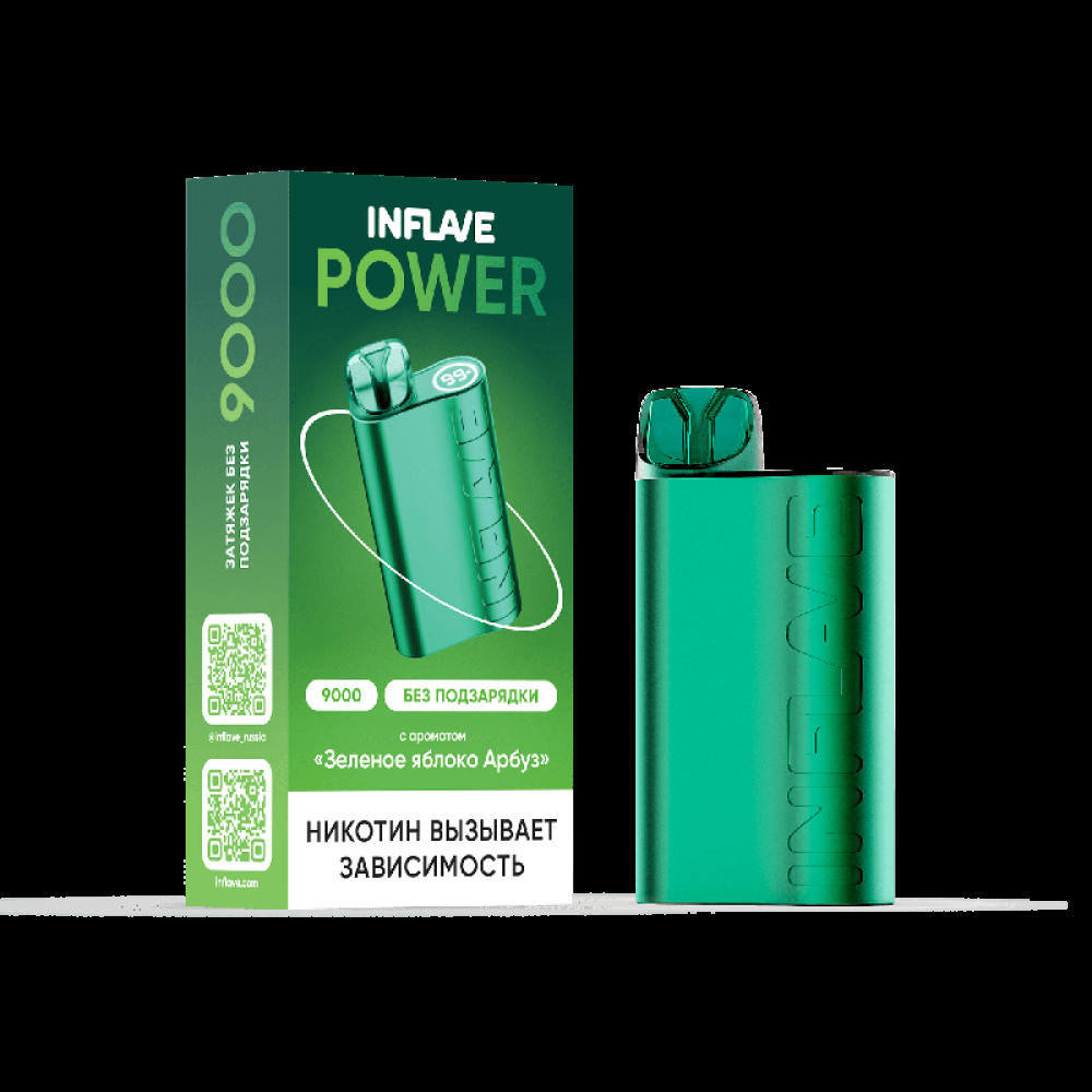 Электронная сигарета INFLAVE POWER 9000 затяжек Зеленое Яблоко Арбуз - купить в Махачкале